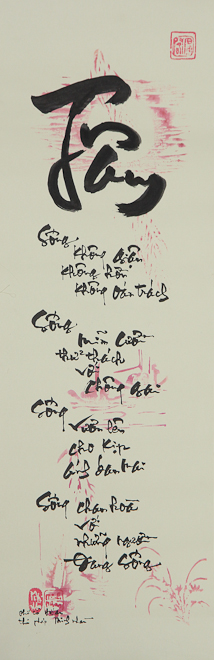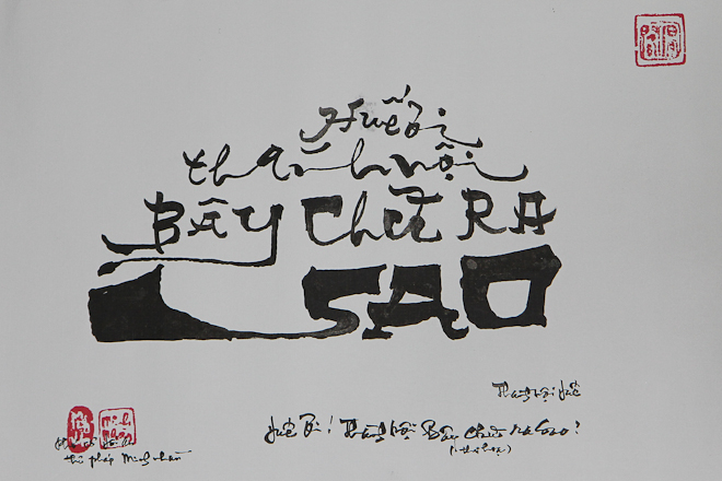 “Il Vietnam ha adottato i caratteri latini da molti anni e ormai fanno parte della vita quotidiana, pertanto ho sviluppato la mia tecnica fino ad ottenere una calligrafia personalizzata. Capita che uso i caratteri cinesi, ma raramente”.