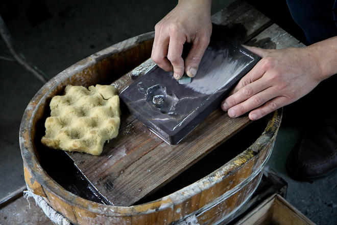 Chae-ku, uno scultore specializzato nella creazione di calamai, ci spiega il procedimento.