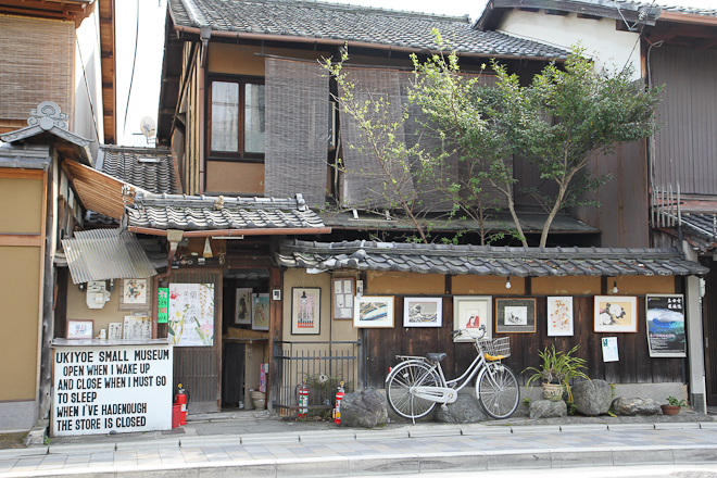 Il cartello appeso alla porta oscilla nel vento freddo del primo pomeriggio. Si muove a strappi, rigido come un cadavere, sotto una lampada di carta mezzo abbrustolita. La porta è scheggiata, la casa è grigia e sporca di cenere. Un ragazzo attraversa Yasaka Street, porta a spasso un cane che si ferma ad abbaiare contro la porta. “Potrebbe essere infestata” penso, mentre prosciugo una birra in lattina seduto sul marciapiede di fronte. Ci sono nuvole cariche di pioggia che scorrono rapide. L’orologio dell’emporio segna le tre e un quarto. Sembra di essere in un film di Sergio Leone. Potrebbe sbucare Henry Fonda col revolver in pugno, il bavero del cappotto sollevato a coprire il ghigno lucido. Invece non succede niente. Mi alzo e vado verso la porta. L’insegna della casa, legno vecchio perforato dai tarli, dice: “Il museo di Ukiyo-e più piccolo del mondo”. Sto per aprire la porta, mi fermo a leggere il cartello. “Apro quando mi sveglio e chiudo quando vado a dormire. Quando ne ho abbastanza, il negozio è chiuso”. Entro e l’ambiente è più suggestivo di una casa infestata dai fantasmi. Ci sono xilografie ovunque. Dipinti che tappezzano le pareti e fogli sparsi sul pavimento, ritagli di giornale che ritraggono l’atelier, poi ancora disegni e stampe, ukiyo-e stropicciati infilati dentro cartellette di plastica, odore di pittura e un sacchetto di carta con un tramezzino masticato. Mi sporgo leggermente oltre il tatami. Ichimura Mamoru è chino sul legno, a creare la sua nuova opera. “Konnichiwa” dico, e lui ha un mezzo sussulto, non si aspettava di ricevere qualcuno, tantomeno un occidentale. Mi viene incontro, ha gli occhi che sono due fessure dalle quali esce uno spicchio di luce nera, capelli raccolti in una crocchia sopra la testa, mani spesse macchiate dalla vernice.