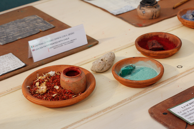 “Sì, per le università organizziamo un percorso di tre giorni (di mezza giornata ciascuno) nel quale si scopre come venivano realizzati i colori, come scrivevano gli antichi (quindi si scopre l’utilizzo della gomma arabica), i più piccoli posso invece partecipare ai laboratori e sperimentare per qualche ora le tecniche utilizzate un tempo”.