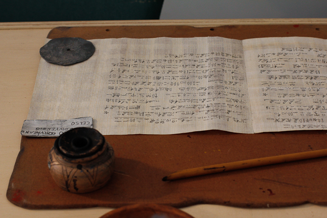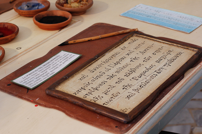 “Il Centro propone ai visitatori una vasta collezione di ricostruzioni tecnico – scientifiche di supporti scrittori e documenti librari antichi con particolare riferimento all’epoca adrianea. È un laboratorio di attività sia scientifiche che didattiche. Per il pubblico proponiamo 9 percorsi tematici nei quali vengono ricostruite tutte le fasi salienti del libro antico, dalla riproduzione al restauro dei vari supporti di scrittura (come il papiro, le tavole cerate o le pergamene), allo studio delle varie scritture fino alla produzione dei pigmenti. Una prima visita guidata ai pezzi esposti è seguita da un laboratorio pratico di produzione del papiro. Viene poi sperimentata la scrittura con il calamo e gli inchiostri naturali sui vari supporti, imparando anche come vengono estratti i pigmenti. A livello scientifico invece ci occupiamo di analizzare i documenti antichi e di ricostruire le ricette dei pigmenti al fine di riprodurre i colori nel modo più fedele possibile in vista del restauro. Identifichiamo eventuali malattie del supporto e datiamo i manoscritti in base ai risultati. Il laboratorio collabora con i Laboratori di Ricerca Scientifica dei Musei Vaticani, dell’Academy of Sciences di Washington, della Smithsonian Institution e altri importanti istituti, e si occupa del restauro di documenti librari ritrovati fra gli scavi o conservati nelle librerie e collezioni private del territorio.”