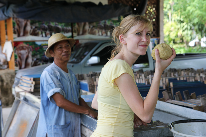 Siamo qui per la nostra nuova missione, la carta prodotta con la cacca di elefante. Da qualche giorno a questa parte siamo incuriositi dalla scoperta che abbiamo fatto. Nella città di Lampang, al Nord della Thailandia, presso l‘Elephant Conservation Center gli escrementi degli elefanti vengono riciclati per produrre un tipo particolare di carta. Siamo incuriositi e al contempo affascinati da quella che potrebbe essere una scoperta rivoluzionaria dal punto di vista ambientale.