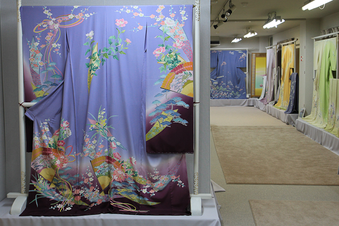 Il “sensei” Teranichi Iko ci spiega che l’intero procedimento di lavorazione dell’abito richiede un impegno notevole e altrettanta manodopera: sono necessari più di dieci artigiani per creare un kimono, e almeno dai 3 ai 4 mesi di lavoro da quando è stato ordinato dal cliente. In totale un kimono richiede più di sei mesi di lavorazione.