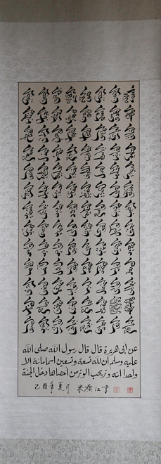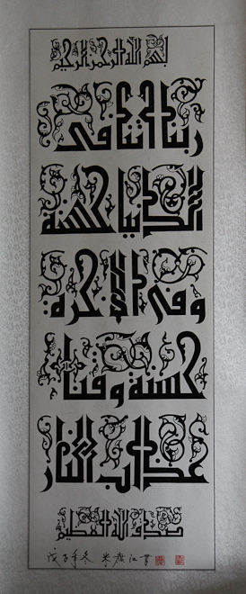 “I suoi lavori, Noor Deen, sono il risultato di una combinazione innovativa fra calligrafia cinese e calligrafia araba”.
