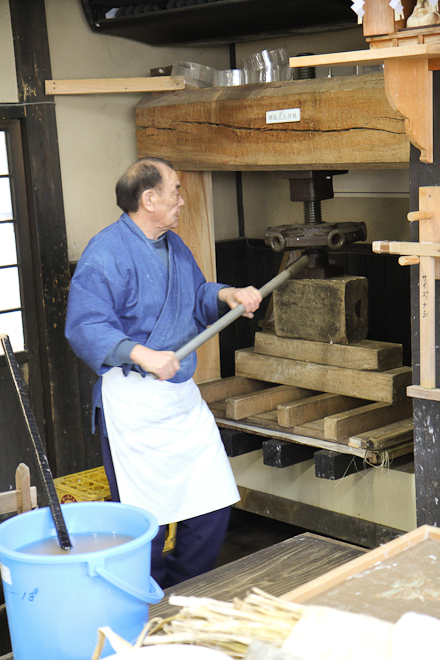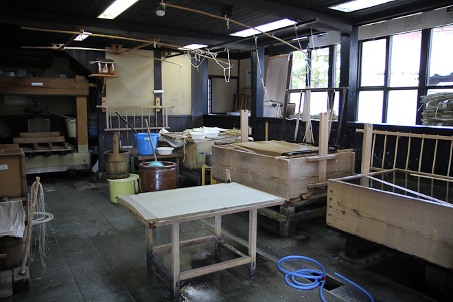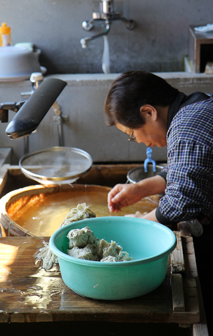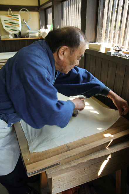 A Echizen non è difficile trovare l’Udatu-no-Kogekan, la cartiera aperta al pubblico. Qui ci sono tre persone che lavorano a pieno ritmo all’interno di un’enorme casa giapponese, finestre di carta e tatami, cuscini, qualche coperta, una stufa elettrica. Il minimo essenziale. Vacuità è la parola d’ordine.