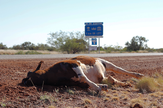 L’outback non è Darwin. Non è la East Coast, con i surfisti spalmati di colla di pesce e le valchirie in bikini, e non è neppure Sidney o Melbourne o il calore nervoso delle città nuove di pacca. L’outback è silenzio. È guidare in stato meditativo, in trance ipersonica per chilometri e chilometri, fra carcasse di canguri divorate dagli uccelli pazienti e tori gonfi di gas travolti da un roadtrain oversize, è sfrecciare incuneati fra dune di sabbia e sterrato bollente, mentre le acropoli di termitai schizzano nello specchietto retrovisore, e da qualche parte nell’etere un deejay folle piazza Johny Cash, e tu ti senti vivo, vivo e oscuro, con qualche strano segreto nell’anima, piazzato dall’Universo in quel determinato momento e luogo, come un big blind obbligatorio prima che cominci la partita, e il paesaggio non potrebbe essere più suggestivo, mentre il freddo dell’aria condizionata congela i battiti in un’ unica grande fotografia, il fermo immagine di una vita in piena, la consapevolezza di volare in mezzo alle ceneri della storia come un pipistrello dalla coda in fiamme.